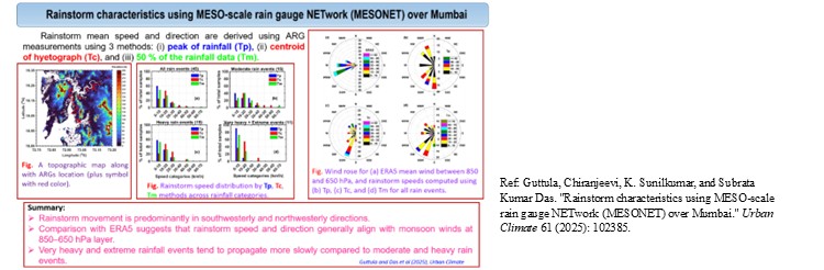 Guttula, Chiranjeevi, K. Sunilkumar, and Subrata Kumar Das. "Rainstorm characteristics using MESO-scale rain gauge NETwork (MESONET) over Mumbai." Urban Climate 61 (2025): 102385.