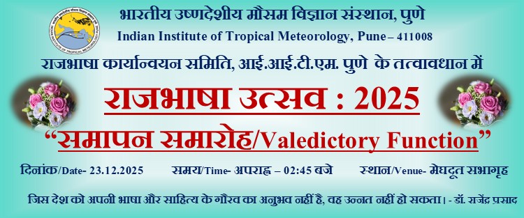 | 8. | समापन समारोह/Valedictory Function | 23.12.2025 | मेघदूत सभागृह | अपराह्न 02:45 बजे |