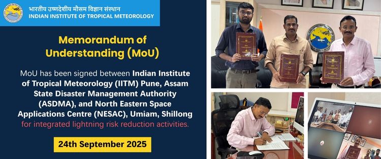 2. MoU has been signed between Indian Institute of Tropical Meteorology (IITM) Pune, Assam State Disaster Management Authority (ASDMA), and North Eastern Space Applications Centre (NESAC), Umiam, Shillong on 24th September 2025